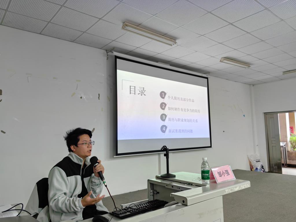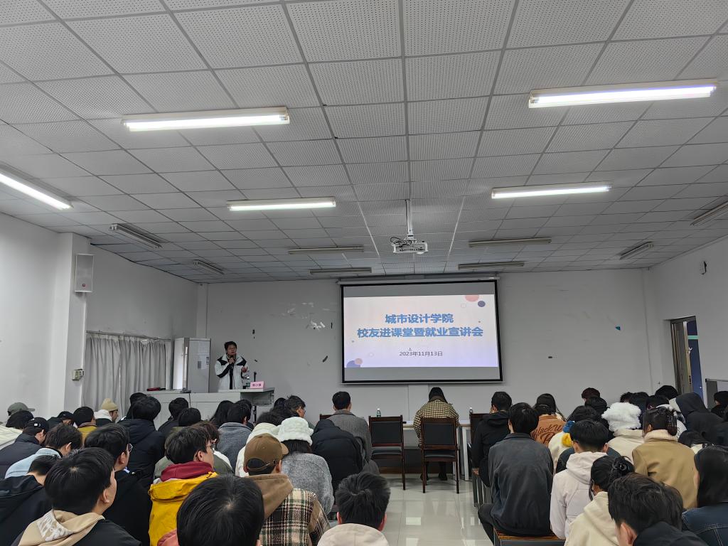 为进一步做好2024届毕业生就业工作,促进毕业生综合素质提高,稳步推进毕业生就业工作,11月13日,城市设计学院在嘉善楼132教室举办校友进课堂暨就业宣讲会,活动邀请了我院2017级优秀校友、广西业之峰智慧家设计装饰工程有限公司首席设计师邹小强主讲,2024届环境设计专业全体毕业生参加。