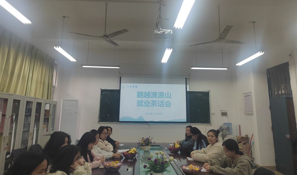 为促进应届毕业生高质量充分就业。11月28日,人文学院2021级汉语国际教育专业于2108会议室开展“翻越浪浪山”就业茶话会。本次活动特邀2020届优秀毕业生张丰彦主讲,辅导员刘北兰主持活动。