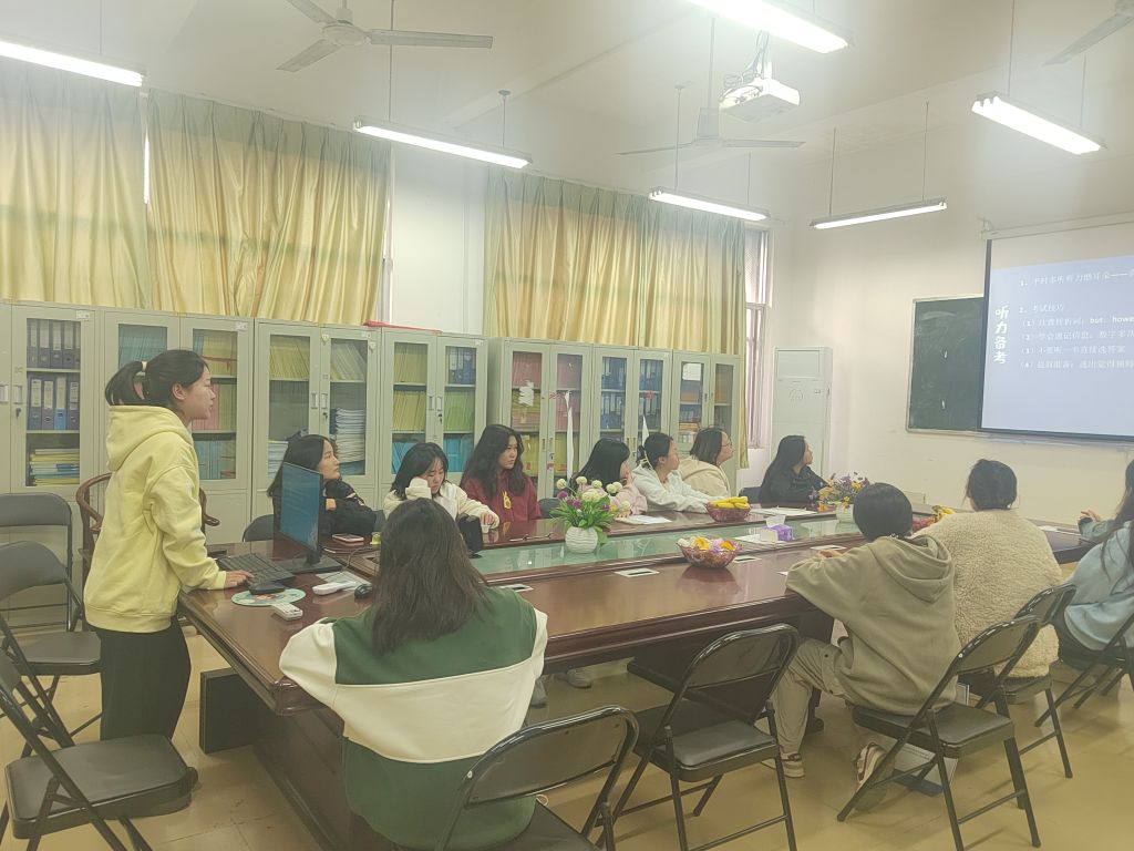 活动伊始,辅导员介绍本次活动的目的及到场嘉宾。随后,张丰彦从考试前、考试中、考试后三个阶段分享四六级考试经验,并深入剖析了各个题型的特点、备考方法和解题技巧。她表示,阅读是主体,要掌握快速阅读和信息定位的技巧,翻译和作文是易得分的部分,词汇积累、语法准确和逻辑清晰是制胜关键,她结合自身备考情况,推荐了相关备考书籍和APP,鼓励大家在考试中保持自信和从容,争取在12月考试中收获好成绩。