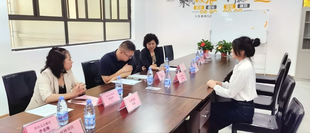 为深化校企合作,进一步落实毕业生就业服务工作,5月23日下午,桂林学院副校长蒋毅带领工商管理学院主持工作副院长、党总支副书记、教师代表、辅导员代表以及财会审类专业14名毕业生一行赴广西五云投资管理集团有限公司(以下简称“五云集团”)开展访企拓岗促就业活动。五云集团副总经理阳太生携集团各部门负责人与与会师生进行了深入交流并组织开展了现场面试,五云集团执行总裁郑伟亮亲自参与面试。