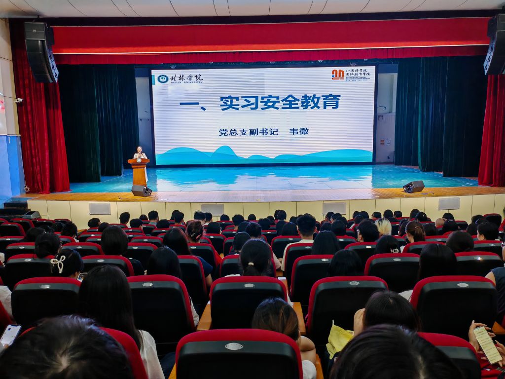 会上,党总支副书记以“安全先行”为基调展开实习安全教育。她从交通通勤规范、实习生活管理、职场人际沟通等维度系统梳理潜在风险点,结合历年实习案例剖析应急处置流程,强调“安全意识是实习生命线”,要求全体学生严格遵守校地双方安全管理规定,筑牢人身财产安全防线。