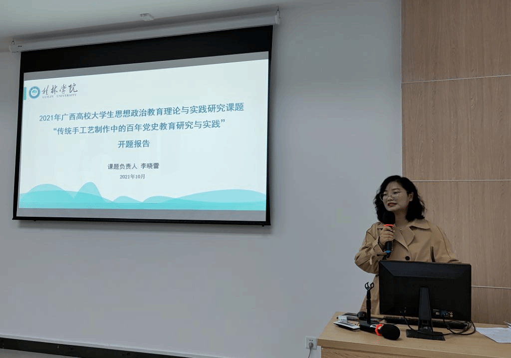 开题报告会开始,教学科研处处长杨杰夫陈述了此次课题申报和立项情况,此次我校共有4项课题获立项,其中李晓蕾团队申报的《传统手工艺制作中的百年党史教育研究与实践》获得重点课题;下一阶段,学校将在科研工作方面加大投入,着力提升科研课题研究质量,营造浓郁的学术氛围;杨杰夫同时提到,希望课题组能借助开题论证机会,认真听取、吸纳专家意见修改和完善研究计划,预祝课题组的研究工作顺利开展并取得更多的成果。