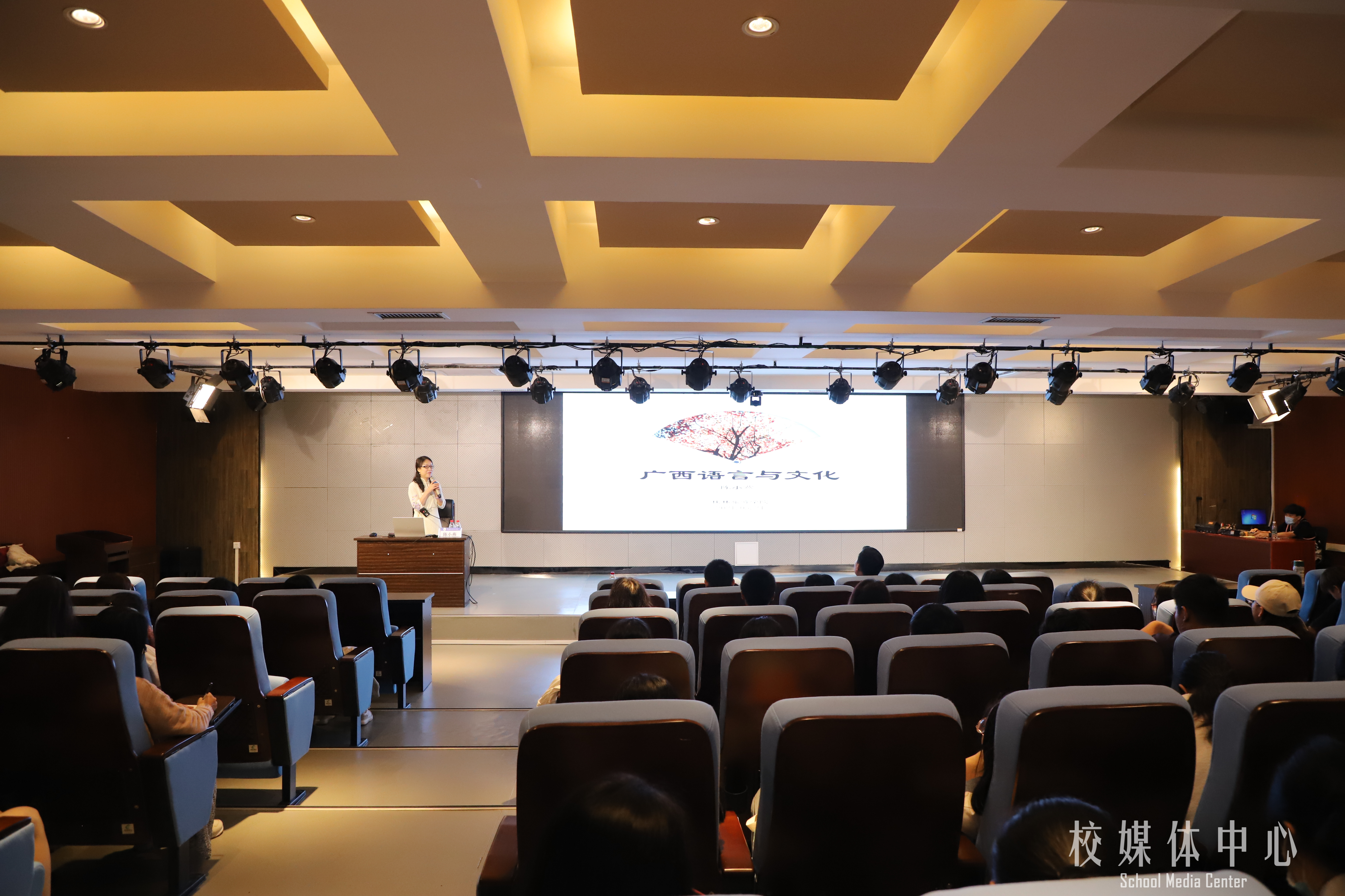 为庆祝中国共产党成立100周年,致力弘扬优秀传统文化,增强当代大学生文化素养,提升民族文化自信。5月24日下午,由广西师范大学漓江学院教学科研处和广西高校重点人文社科研究基地桂学研究院共同举办的“桂学研究”系列专题讲座迎来了第七讲。本场讲座的主题是广西方言和文化,主讲嘉宾为桂林旅游学院文化与传播学院的陈小燕教授,全校各专业师生代表200余人到场聆听讲座,讲座同时通过网络视频方式向社会各界进行同步直播。