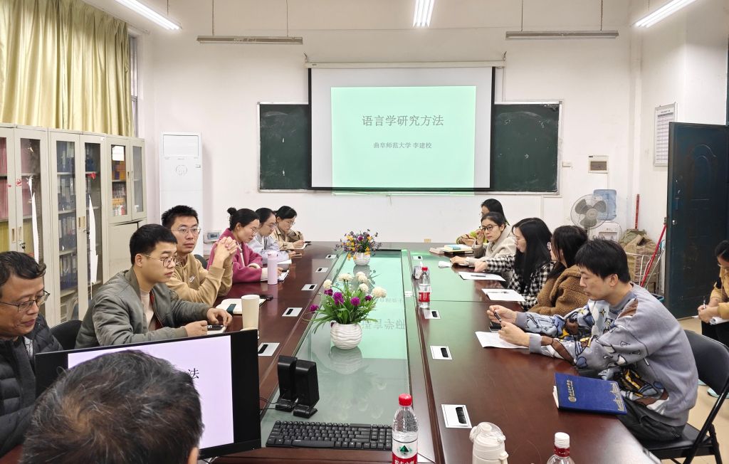 讲座伊始,李教授首先深入剖析了科研方法的重要性。他结合自己的研究经历,主要就语言学领域中的历史比较法、系统分析法和类型分析法作分享和讲解。他以典型的音韵学例子,深入浅出地阐释了这些方法在语言研究中的操作程序和重要作用。他指出,正确的科研方法是取得科研成功的关键,这些方法对其他领域研究也具有借鉴作用。