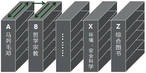 我校图书馆采用《中国图书馆分类法》(简称中图法)进行文献分类。严格按书脊上的索书号逐架从上到下,从左往右呈“Z”字形走向进行排列。