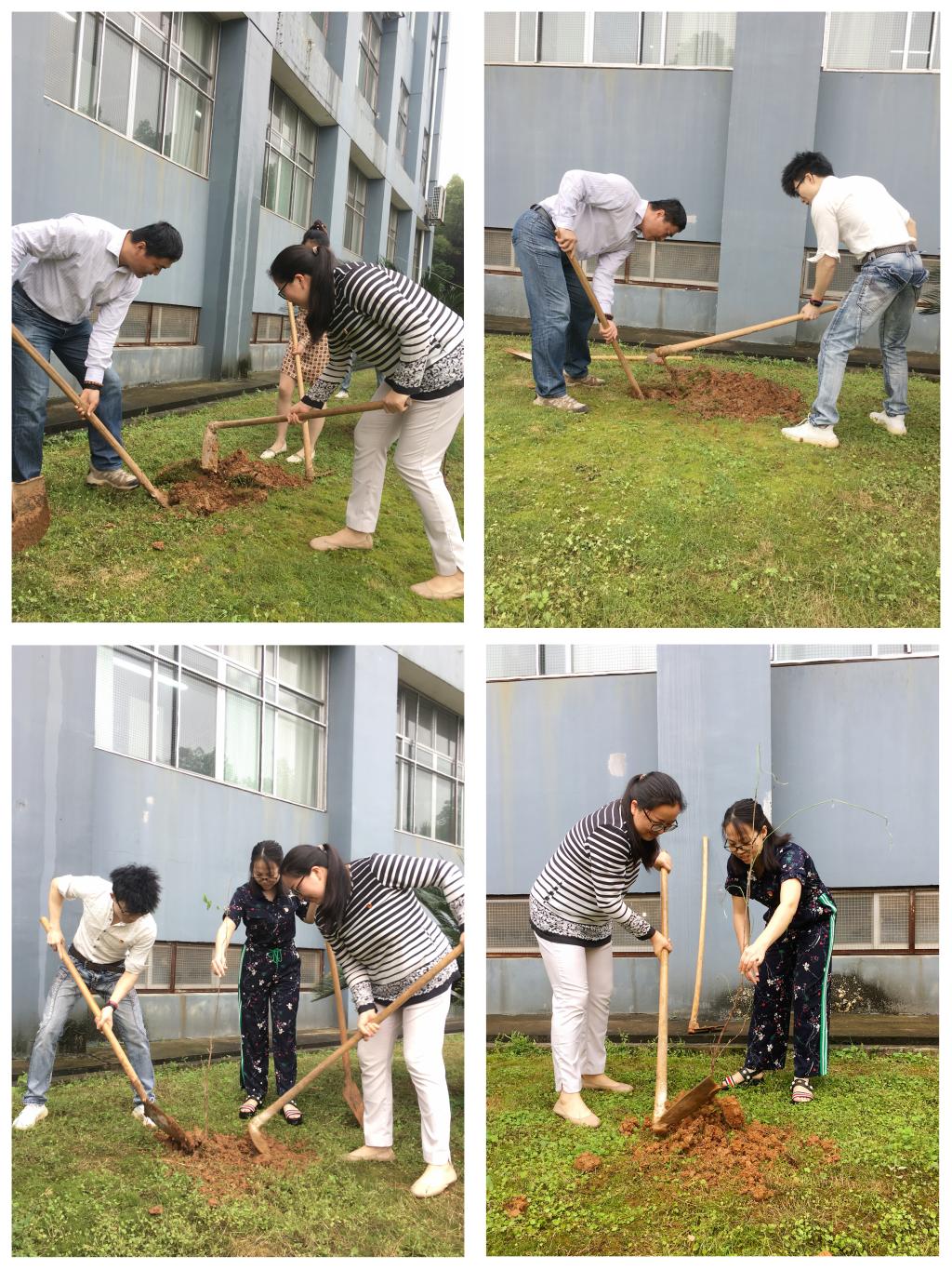 春回大地,万物复苏,时值四月,微风细雨,正是春种好时节,为积极响应习总书记提出的“绿水青山就是金山银山”的绿色发展理念,4月25日,图书档案党支部联合后勤保卫党支部全体党员开展了义务植树活动。