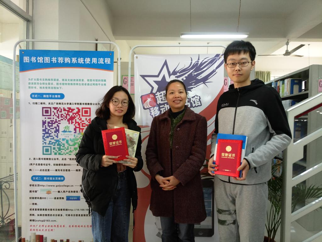 图书馆馆长何秀梅(左二)与“荐购之星”二、三等奖读者合影