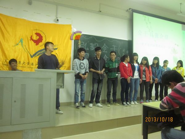 首先,主持人王思维简单地为大家介绍了“弘毅读书社”的成长历程,让大家感受到它的庞大和温暖。全场都以热烈的掌声欢迎2013级新会干加入弘毅大家庭,气氛一下子热闹起来。接着在欢快的音乐旋律下,“第四届读书月成果视频”引领大家一起回顾起上次读书月的点点滴滴。屏幕上会干们一张张为“弘毅”辛勤工作的照片得到了老师的认可,一片片回忆的镜头得到了所有人的赞赏。“弘毅”愈愈强盛的现状少不了背后有那么一群可爱的会干辛勤的付出。梁莉冰老师分享了自己的心得和体会,并鼓励大家秉承良好的心态面对工作和学习。“弘毅读书社”经过举办了四届的活动,已越变越成熟,越变越成功。像“回访大连小学”由一开始简单的捐书,到为小学建设图书馆,到现在的为小朋友们讲课,这些都是一个质的飞跃。她说,“希望在新一届会干的带领下,弘毅能越办越好,大家在以后不管遇到什么困难,都要学会善始善终,秉承坚持不懈的精神是可贵的”。铁打的银盘,流水的冰。紧接着是2011届的会长甘伟东学长向大家畅谈了他在弘毅点点滴滴的记忆,还为大家提供了许多可贵的经验,最后为大家送上最真挚的祝福,整个过程深深让大家体会到这个大家庭的温暖和活力。老会干们做了精彩的自我介绍后也分别就原所在岗位的主要工作作了介绍,使新会干们更好地了解自己今后工作的内容。