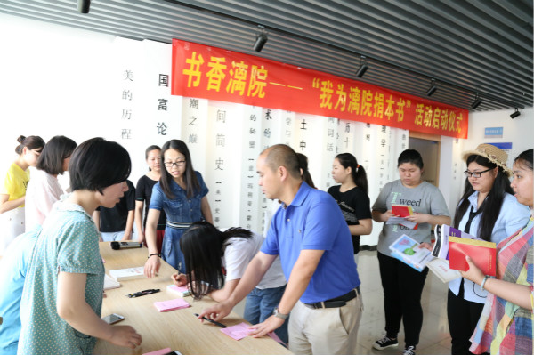 杨庆庆副校长为活动致辞。她表示:学校图书馆建馆时间较短,馆藏图书还不能满足师生需求,因此,图书馆的发展还需要广大师生的共同努力,除了学校今后加大投入力度外,希望得到广大师生和校友一如既往的支持。如果师生们有闲置的图书,希望能捐赠到图书馆来,让更多的读者分享好书。同时希望图书馆将师生的赠书整理加工好,让这些图书早日与读者见面。