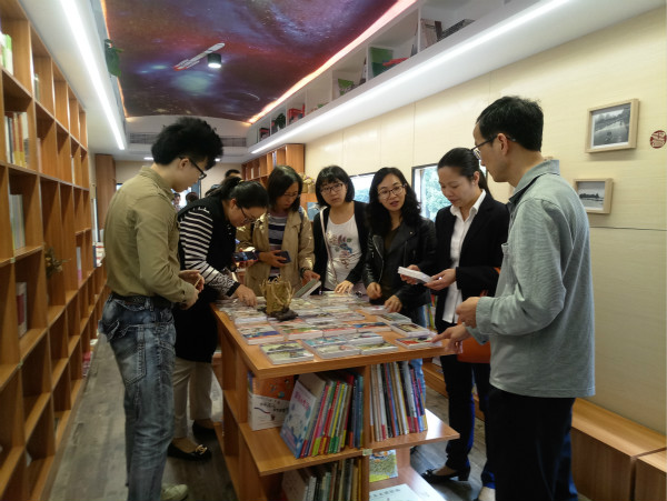 会谈结束后,在杨馆长的带领下,我校图书馆老师参观了航院图书馆馆区、新书展厅、新校区教学楼中心书库以及极具特色的刚开放不久的“读秀书房.桂航火车号”。