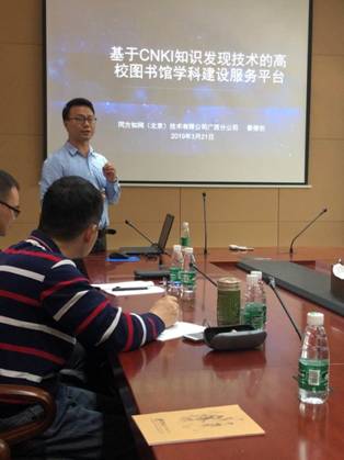 此次研讨会围绕三个议题展开,分别是:知网是什么、知网有什么和知网知识服务计划。会议伊始,广西师范大学图书馆周小发副馆长介绍了此次会议的目的以及愿景。接下来,CNKI公司的讲师详细介绍了知网大数据、知网知识管理软件、基于CNKI知识发现技术的高校图书馆学科建设服务平台和中国知网2019年知识服务计划,并现场展示了CNKI在大数据背景下的学科整合、教科研平台的应用等。最后,各个高校的图书馆参会代表分别就CNKI的使用心得及问题进行了交流。