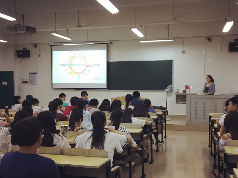 晚上19点30分开始的培训讲座由超星公司的培训师陈家宝主讲,图书馆部分老师及各专业学生近百名同学参加了活动。陈老师分别介绍读秀学术搜索、百链、移动图书、歌德电子借阅机的使用方法,具体指导同学们如何进行知识全文搜索、文献传递以及通过移动图书馆查询馆藏、下载图书并阅读,同学们踊跃参与并进行交流互动,同时通过现场上机检索,体验资源应用,进一步增强对培训内容的理解,达到快速检索所需电子资源的目的。