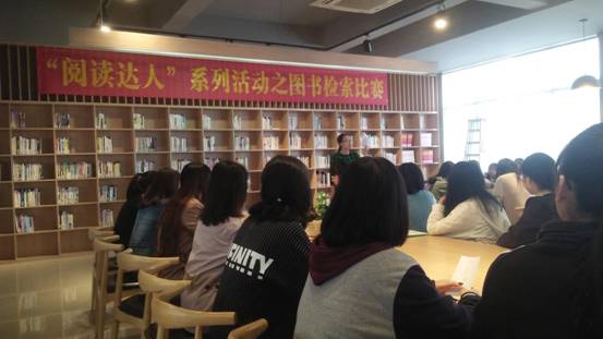 为使广大读者进一步了解图书馆的纸质图书排序规则,更好地查找和利用图书馆文献资源,11月9日,图书馆组织同学们在三楼多功能阅览室开展图书检索比赛活动,共计60名同学参加了检索活动,弘毅读书社成员担任本次比赛的计时员。