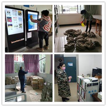 通过近段时间的工作,图书馆熟悉了消毒防控的工作要求和程序方法,进一步增强了疫情防控的意识和能力。随着我校第一批学生返校日期的临近,图书馆将继续按照学校疫情防控工作“十严格”的要求做好疫情防控,多措并举加强服务,用实际行动保障广大师生生命安全的同时,让师生到图书馆来的放心,也来的舒心。