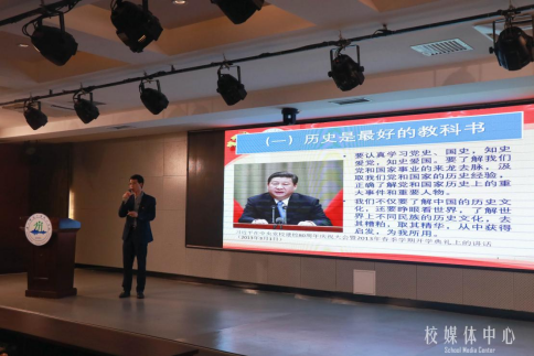 潘济华老师从青年学生为什么要学习党史,青年学生要从党史中学什么?青年学生如何肩负历史使命等三方面阐述了青年学子认真学习党史、国史的重要性,倡导大家要从了解中国共产党和人民共和国的历史发展、了解党和国家历史发展过程中的重大事件和重要人物,汲取党和国家的历史发展经验,树立正确的人生观和价值观,从而自觉做到知史爱党,知史爱国。潘老师说学习党史是坚持和发展中国特色社会主义,把党和国家各项事业继续推向前进的必修课,“四史”这门功课青年学子不仅必修,而且必须修好。