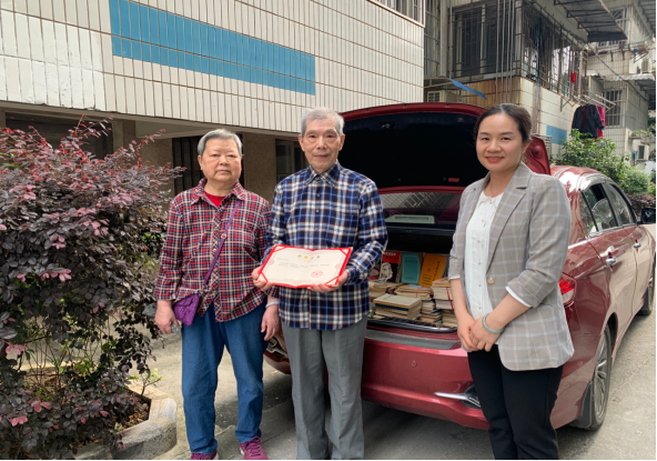 图:图书馆老师向袁明光、杜奋嘉两位教授颁发《图书捐赠证书》