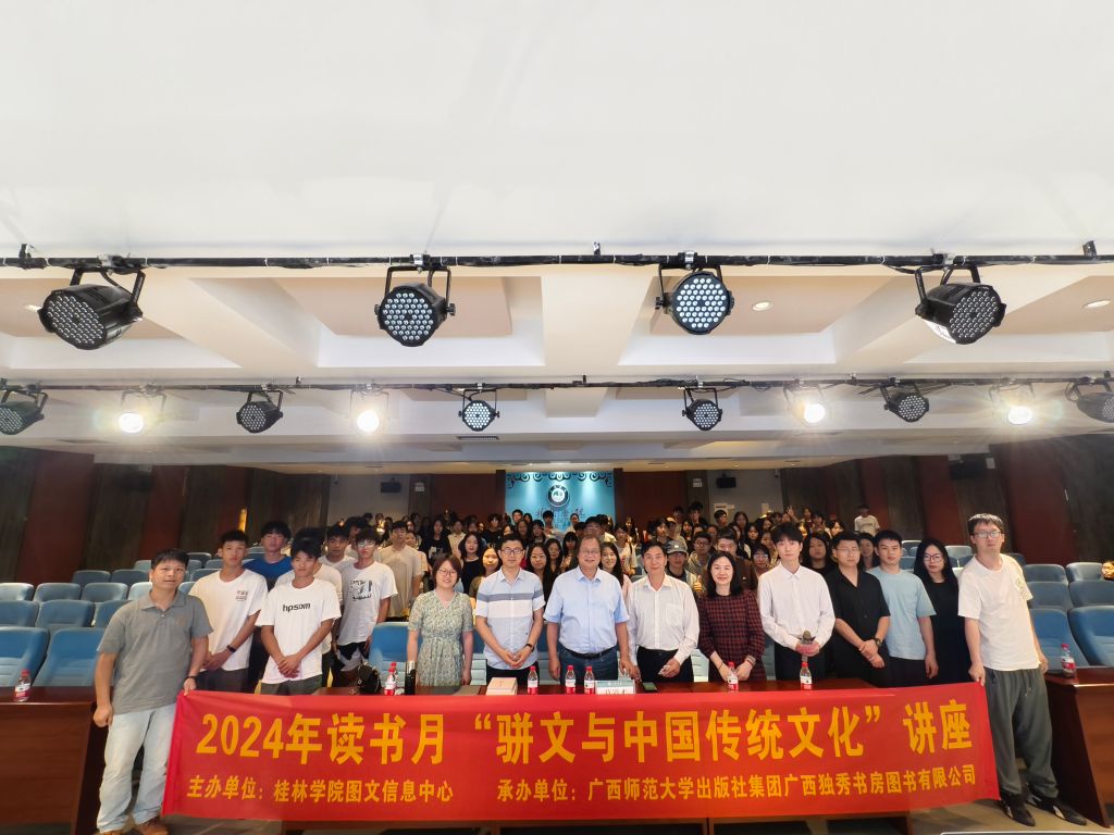 2024年5月22日下午,广西师范大学文学院莫道才教授应邀来校讲学,在学校至善讲堂作了题为《骈文与中国传统文化》的主题讲座,我校来自各个学院的学生以及人文学院的老师共180人聆听了此次讲座。