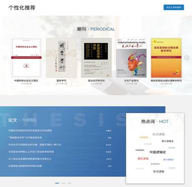 人大《复印报刊资料》首页的个性化学科知识推荐,实现对期刊、论文、热点词等的推荐。