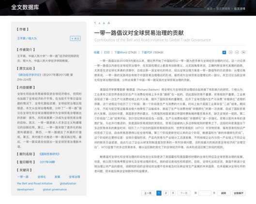 用户可在线对论文进行全文阅读。在阅读的过程中,用户可对文本进行复制粘贴、选择字体大小、打印论文、下载论文(Word或PDF格式)。同时,用户还可收藏论文、关注作者。