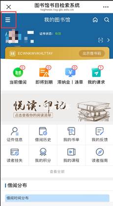 登录“我的图书馆”。登录账号及密码与原电子证相同,原电子证的账号为教职工的工号或学生的学号,初始密码为“Ts 身份证后六位”;如密码已修改过,则用修改后的密码登录。