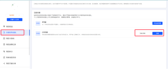 2.登录成功后,点击右上角的头像,进入个人中心,点击左侧的“关联机构/团队”,有2种关联方式。