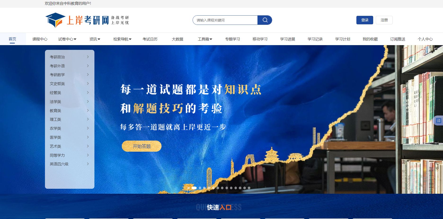 “上岸考研网”是中科教育携手橙啦、中公等国内顶级考研辅导机构研发推出的新一代智能化考研学习服务平台。
