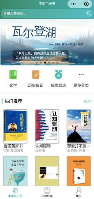 利用读者碎片化时间,通过每天阅读10分钟左右的内容,在设定的期限内共同读完一本书。帮助读者长期地管理自己的阅读计划,和其他读者一起交流分享阅读心得,享受阅读的乐趣。用循序渐进的方式,助力读者养成持续读书的好习惯。除了每日花少量的时间参与读书打卡活动以外,平台还配置了大量电子书供广大读者免费阅读,满足读者日常的阅读需求。电子书包含:文学经典、历史传记、成功励志、经济管理、艺术等16大分类。平台不上架任何小说爽文。“共读一本好书”平台,上架图书均为热门推荐、经典文学等可提升读者综合素养,对读者成长和思维方式有实际意义和提升的书籍。