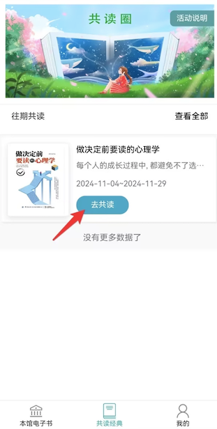 第三步:点击“共读经典”,去共读,开始今日共读。