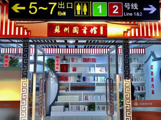 首个“红色活力站”内外整体设计风格凸显红色文化主题,又嵌入苏式传统建筑特色。除具备基本的图书借还功能外,还设有红色初心书架,涵盖习近平总书记著作、“四史”教育学习主题图书、党建理论知识图书等,方便群众在上下班路上、在家门口就能感受到便捷、优质、集成的红色文化生活。