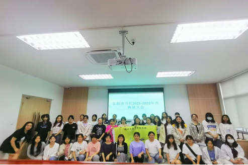2022年5月20日弘毅读书社迎来了换届大会,本次会议在图书馆三楼报告厅举行。指导教师谢春双老师和弘毅读书社全体成员参加。
