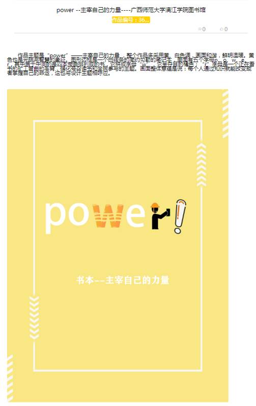图书馆组织参与的这项活动,也得到各二级学院特别是设计学院的积极配合,通过图书馆联合设计学院推荐、设计学院副院长贺雷主持评审, 设计学院钟美艳的作品《书籍伴侣》、语言学院廖红彬的作品《书本--主宰自己的力量》脱颖而出获得一等奖,并推送参加全国评审。设计学院王嘉丰、语言学院石宝霖等四位同学荣获二等奖,设计学院潘立树、经济与管理学院李杰等六位同学荣获三等奖。