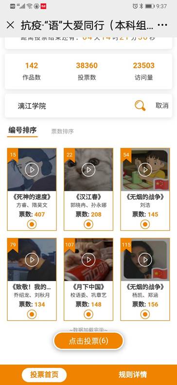 温馨提示:可通过学校和编号等搜索你想要投票的作品。(漓江学院或作品编号:15、22、54、79、107、115)