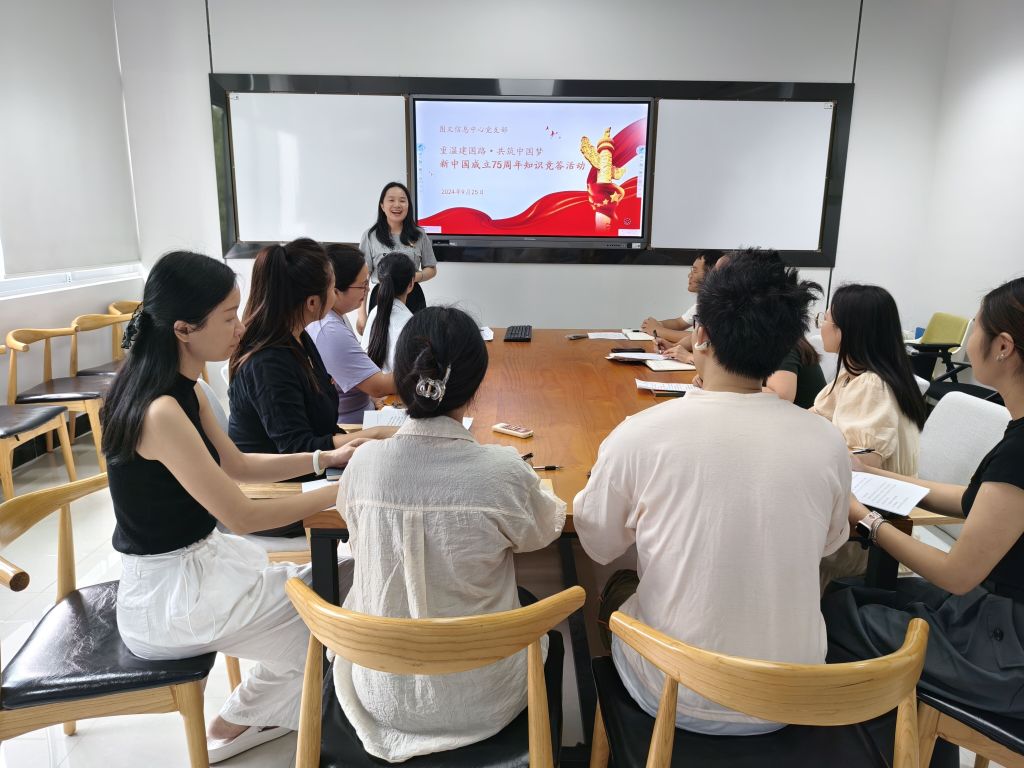9月25日,图文信息中心党支部开展了一场以“重温建国路·共筑中国梦”为主题的新中国成立75周年知识竞答活动。此次活动旨在深入学习贯彻党的二十大精神,引导全体党员同志继承爱国主义优良传统,弘扬民族精神,共同回顾新中国成立75周年的光辉历程,展望中华民族伟大复兴的光明前景。