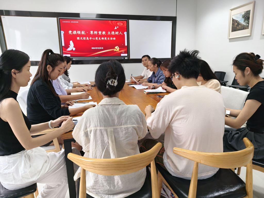 为学习宣传贯彻习近平总书记重要讲话和全国教育大会精神,学习《中共中央国务院关于弘扬教育家精神加强新时代高素质专业化教师队伍建设的意见》,图文信息中心党支部于9月25开展“党旗领航·尊师重教·立德树人”主题党日活动。