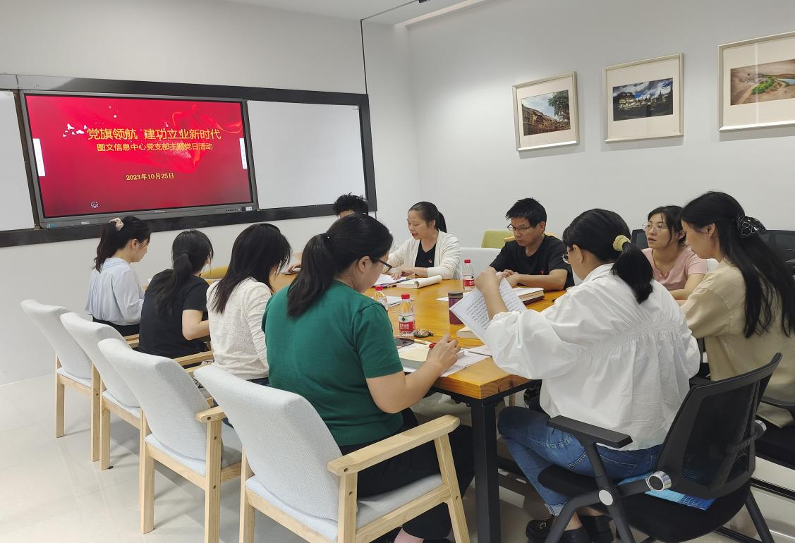 为深入学习贯彻习近平新时代中国特色社会主义思想,提高党员的政治素质和思想觉悟,图文信息中心党支部于10月25日在图书馆三楼活动室开展以“党旗领航•建功立业新时代”为主题的党日活动,支部全体党员和入党积极分子参加活动。