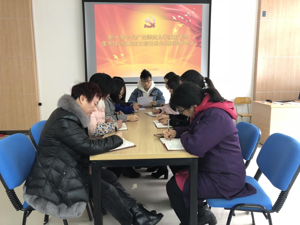 2月28日上午,中共广西师范大学漓江学院图书馆\档案馆党支部召开换届选举大会。大会由党支部书记黄文胤同志主持,全体党员教师参加了此次大会。