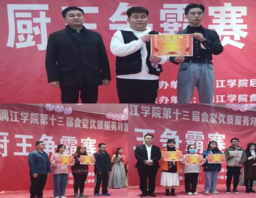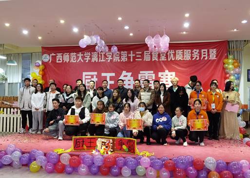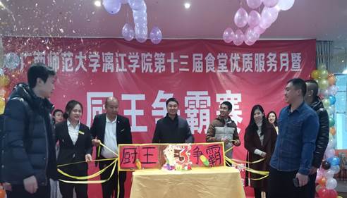 11月25日,学校后勤保卫处主办、广西新生活餐饮公司、校食管会协办的漓江学院第十三届食堂优质服务月暨“厨王争霸赛”在乐善食府三楼成功举行。后勤保卫处处长李久华、副处长秦家荣、传媒学院党总支副书记王德彬、学生事务部和后勤保卫处老师、新生活公司滕兴伟经理以及校团委学生会各社团组织代表出席此次比赛并担任评委。