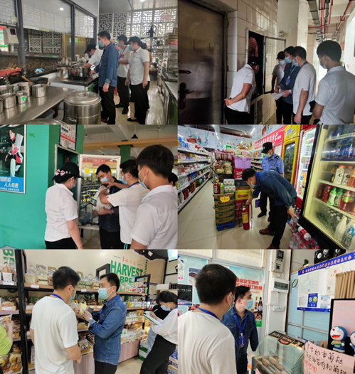 同时,检查组对学校食堂、商铺、车队、消防进行安全隐患检查。对食堂生鲜原材料验收检查、油烟净化灶头具清理、副食品生产日期安全检查、洗消间规范操作和台账工作检查、消毒设备安全检查;对校内商铺消防设施年检记录、用电设备和商品生产日期做安全检查;检查车队的校车雨刮设备、行李箱安全规范以及卫生防疫和车辆台账记录; 最后对校园周边环境进行安全隐患排查,发现损坏围墙第一时间通知基建整改,并及时检查更换学校破旧的消防水带,确保后勤工作的有序进行。