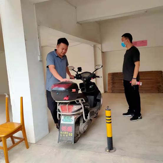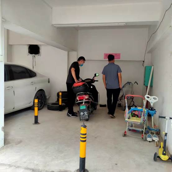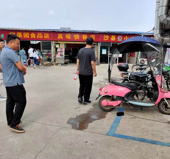 图:检查人员检查商铺车辆停放情况