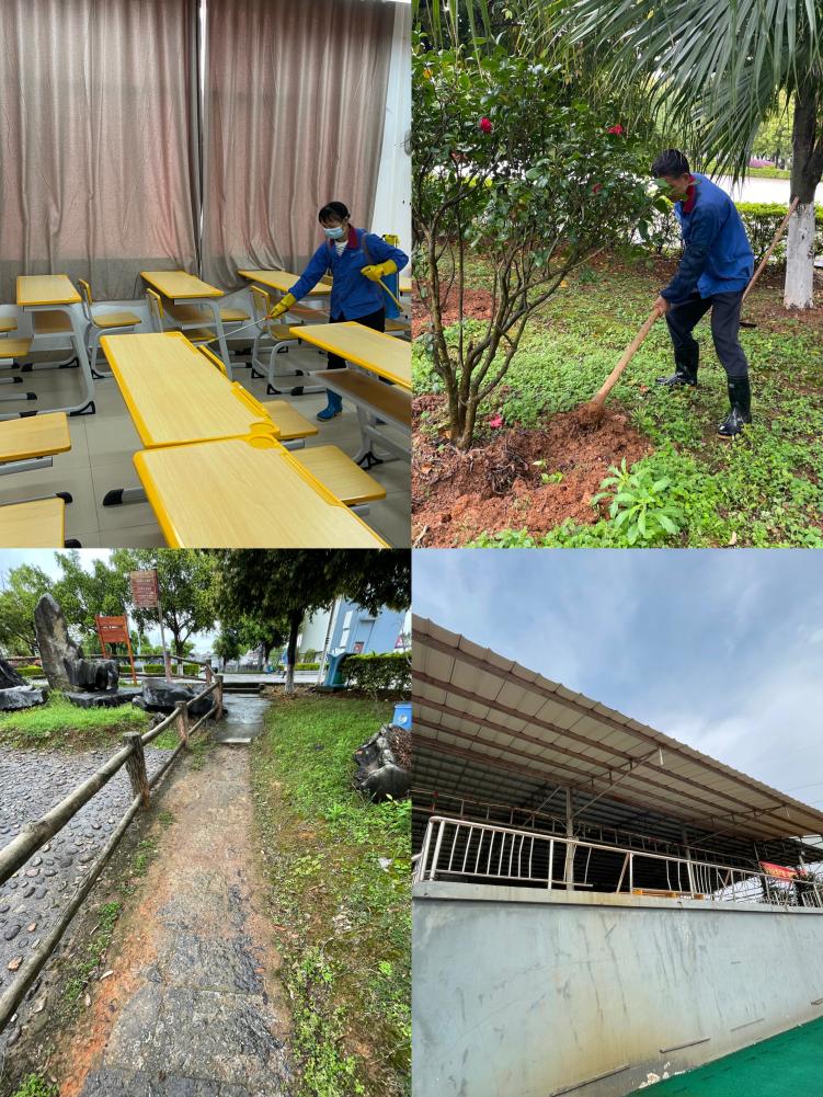 最后绿化保洁人员根据校防疫要求做好相关防疫工作,加强公共区域消毒通风,同时做好春季相关植物养护以及移植工作。