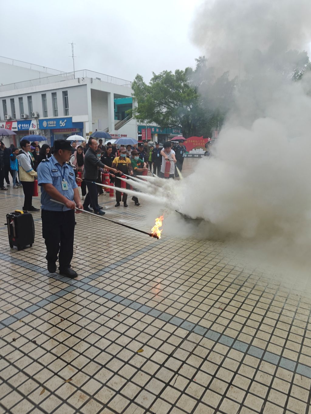 本次演练由消防安全知识培训与灭火实操演练两部分组成。演练前,讲解员做了详细的消防安全知识培训,讲解了食堂中易疏忽的火灾隐患、火灾事故的应对措施、常见消防设施设备的配置和使用方法等知识。随后现场演示了灭火器的使用方法、步骤与动作要领,让大家学习正确使用灭火器材对起火点进行扑灭,即一提灭火器,二拔保险销,三瞄火根部,四压实把手,五喷灭火剂,并让现场的参与人员分组亲自进行现场灭火实战体验。