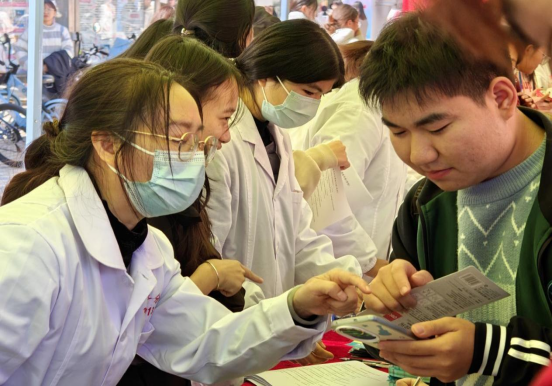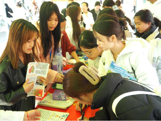雁山区卫生健康委通过扫码答题的方式让学生参与防艾知识学习并免费发放避孕药具和小礼品;桂林市医保局雁山分局就桂林市城乡居民基本医疗保险政策进行宣传和解读。