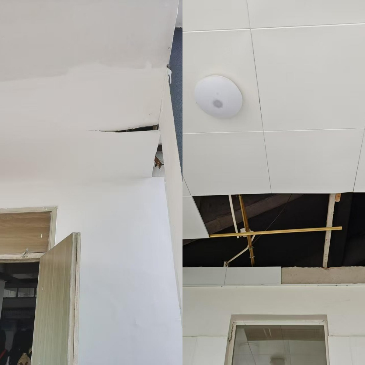 基建维修维护方面,检查组发现教学楼一区三楼天桥天花板存在掉落隐患,1401、1414教室旁厕所吊顶脱落、琴房墙面天花板腻子脱落等问题,已责令相关部门立即整改。