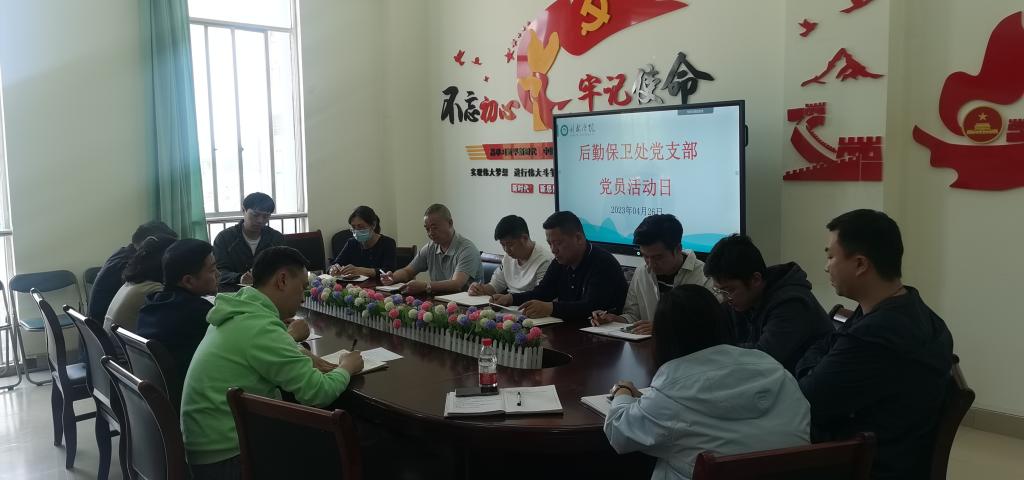 4月26日下午,后勤保卫处党支部召开支部党员会议,传达学习廉洁精神,开展以“党旗领航,争创清廉先锋”为主题的党日活动。