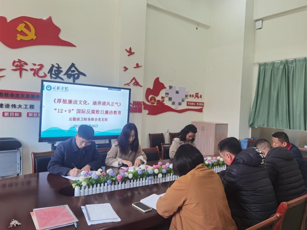 12月6日,后勤保卫财务联合党支部组织开展党员“党旗领航 .踔厉奋发勇作为”主题集中学习和“12·9”国际反腐败日廉洁教育学习会。