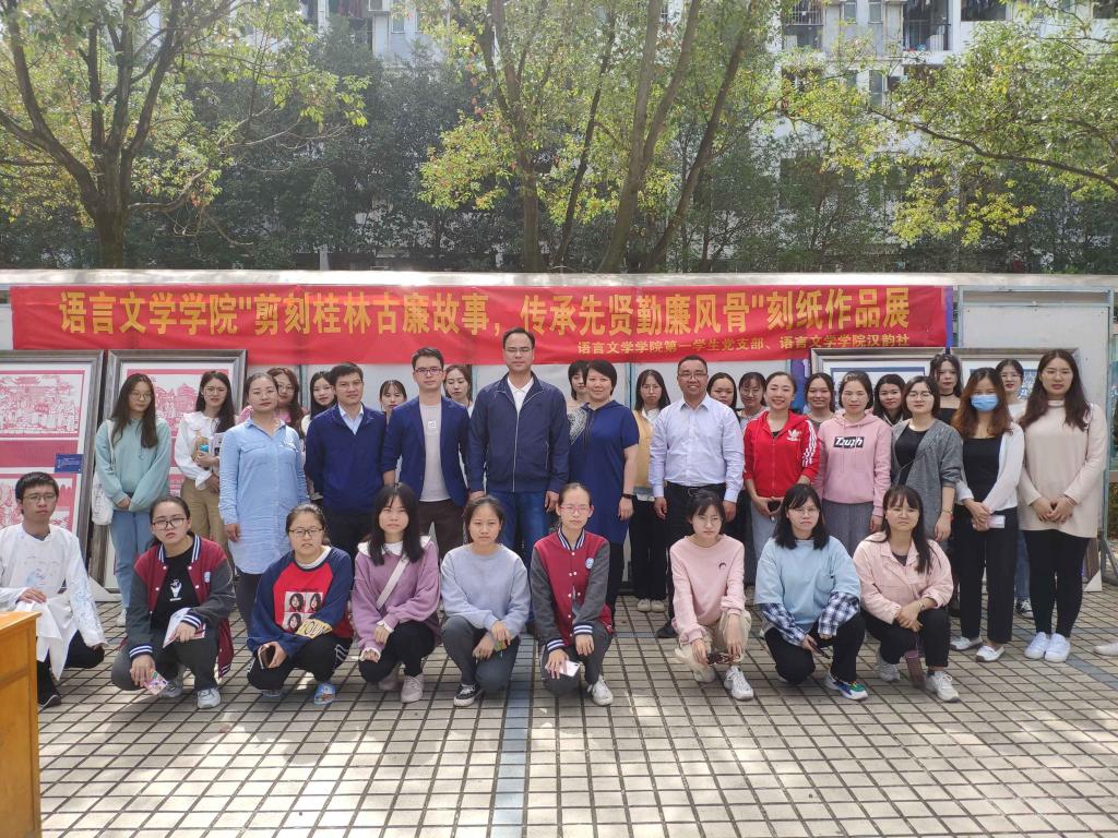 10月26日,学校党委副书记、纪委书记、副校长邓志平,副校长杨庆庆及校纪委相关负责人等参观了由语言文学学院举办的“剪刻桂林古廉故事,传承先贤勤廉风骨”刻纸作品展。