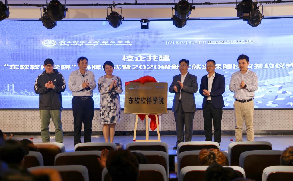 仪式上,我校副校长杨庆庆与东软集团副总裁李印杲共同为“东软软件学院”揭牌。