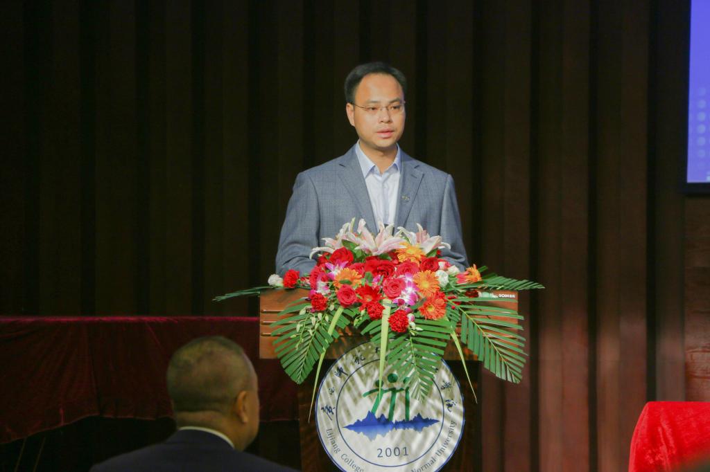 中软国际执行董事、高级副总裁、中软教育集团董事长唐振明代表中软教育集团对我校“中软国际大数据产业学院”的成立表示祝贺,向支持高校发展的地方政府、企业表示感谢。他指出此次与漓江学院携手共建行业学院,既是响应国家政策的号召,也是校企之间实现强强联合、优势互补、资源共享的又一次有益尝试,通过共建“软件学院”、共建专业等多种形式,与学校建立友好合作关系,为学生实习、实训、就业提供更大空间,为企业培养更多高素质、高技能的应用型人才。