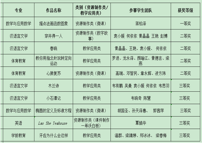 我校获得2020年师范生信息化教学应用比赛获奖作品一览表