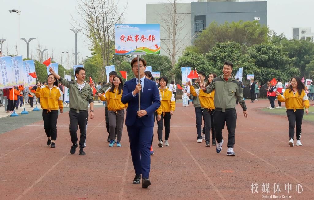 11月5日上午,我校首届校园体育文化节暨第十八届田径运动会开幕,田径场上掌声雷动、热闹非凡。在开幕式上,各方队、各代表队身着盛装、精神抖擞,步伐铿锵,伴着慷慨激扬的《运动员进行曲》依次进入运动场,并分别带来了精彩的表演,赢得了现场观众阵阵掌声和欢呼声。